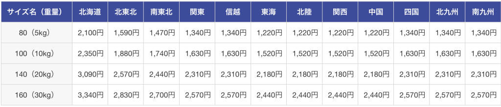 送料一覧